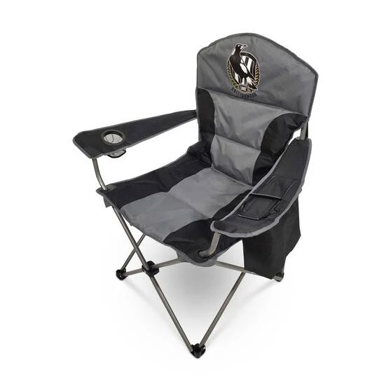How passionate are you about your Australian Football League side? If you are a diehard for your designated footy side, then show your support with the latest range of AFL camp chairs. However, these chairs aren’t all about looks, and making a statement to the opposition fans. They are packed with an abundance of features which make them a great and durable, high quality chair. With a powder-coated steel frame, the chair takes up to 130kg weight. The chair is also comfortable, thanks to the fabric layering, as well as highly practical with an inbuilt insulated drink holder and storage bag in the armrest. So sit back and enjoy the game with the latest range of supporter arm chairs. If you support the boys inblack and white from Collingwood, grab a chair and show your true colours.