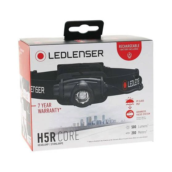 The Ledlenser H5R Core Headlamp will illuminate your path with the adjustable power of 15 to 500 lumens. The H5R headlamp is practical and versatile, thanks to the Ledlenser patented Advanced Focus System, continuous dimmability and 160- degree lamp head rotation. This headlamp comes equipt with a magnetic charging cable and battery status indicator, so you know when to re-charge!