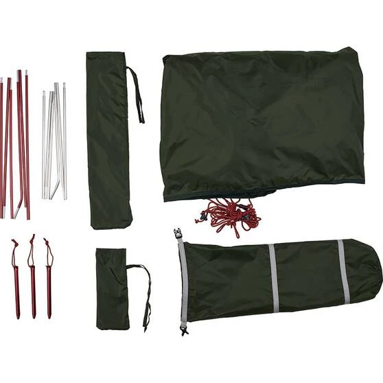 - Alloy poles and alloy “v” stakes hold the tent secure in strong wind