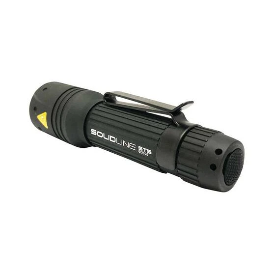 With strong aluminium housing and porous surface for grip, the compact, reliable Solidline ST5 Torch is ideal for day to day use. The design of this flashlight includes a Focus Control System, allowing the user to focus the light beam. The torch also features an additional clip, handy for attaching the torch to a belt or pocket.