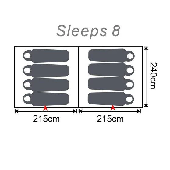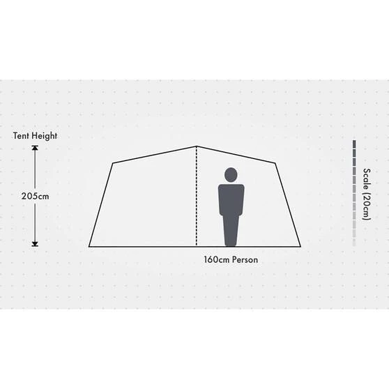 The design includes enough space for up to eight people in a single room, or a two room design with the help of the included room divider. Roll up windows on the inner tent allow you to open and close the windows without going outside – ideal for allowing or restricting airflow in the middle of the night. Ideal for the summer months, this instant tent has been designed with UPF50+ for protection against the Australian sun and No-See-Um mesh on the windows to help keep those mosquitos out.