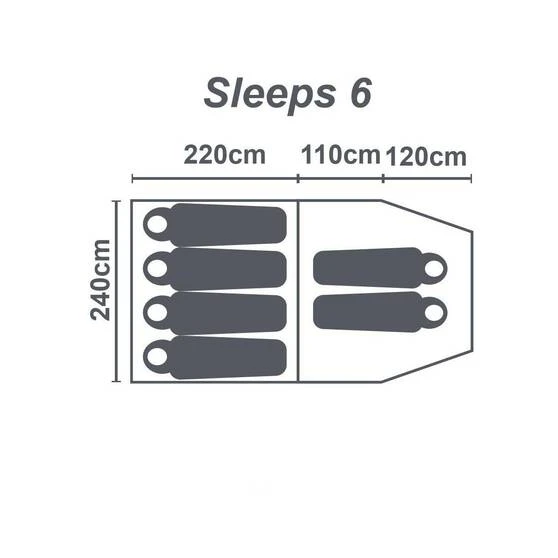 Enjoy the great outdoors without the fuss with the Wanderer Magnitude 6 Person Dome Tent. It’s easy to set up and pack down, with plenty of space for the whole family. It’s made with 2 rooms and a front vestibule for extra storage. The front awning gives you plenty of shade, and the 2000mm water rating will keep you shielded from the elements. Perfect for a relaxing campout with the family.