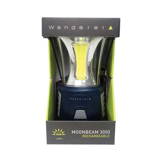 You’ll be over the moon with the Wanderer Moonbeam Rechargeable Lantern. This USB rechargeable lantern brings bright, 3000L light to your campsite. The different light settings let you get as much light as you need on a moonlit night. Featuring a rubber non slip base and a pivoting hang hook make it convenient and easy to use. The perfect rechargeable camping lantern for those long, moonlit nights in the great outdoors.